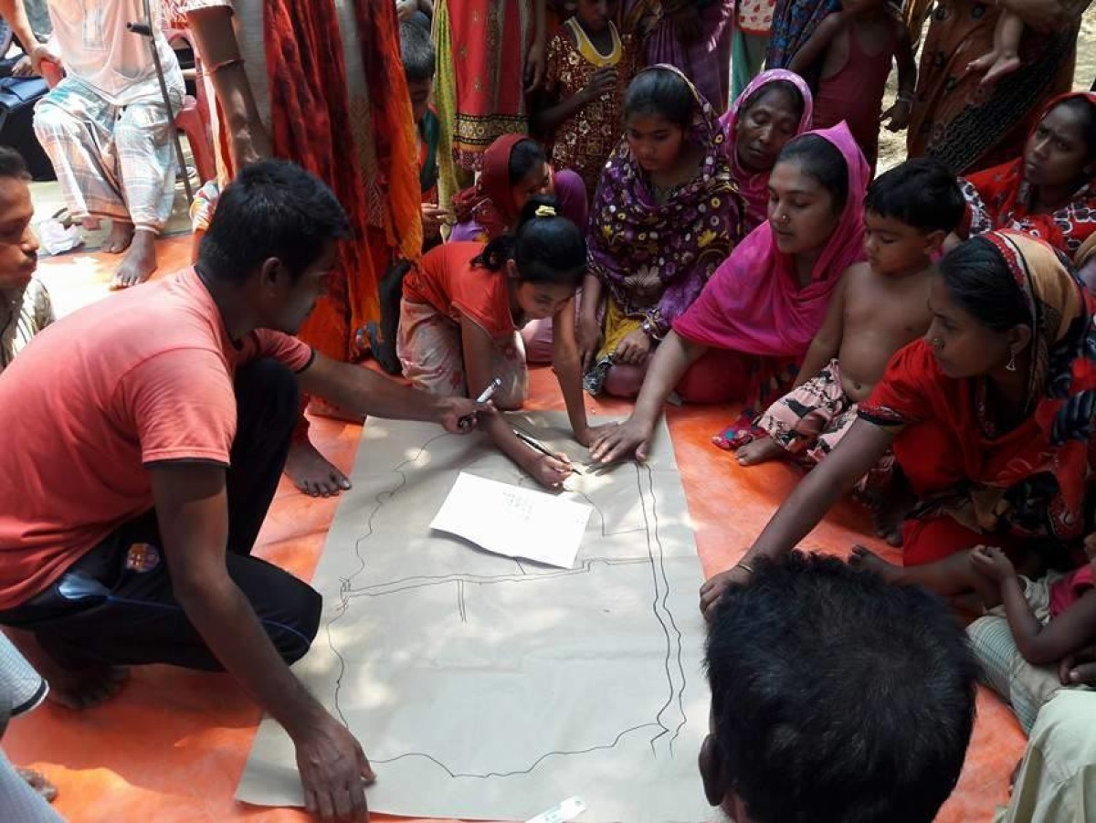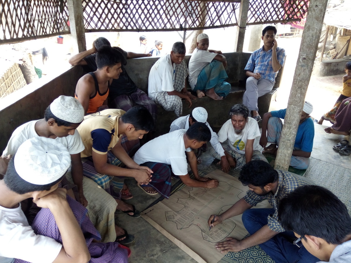 L’association a également mené ce ‘mapping’ communautaire dans le village de Balukhali, en impliquant des membres de la communauté.