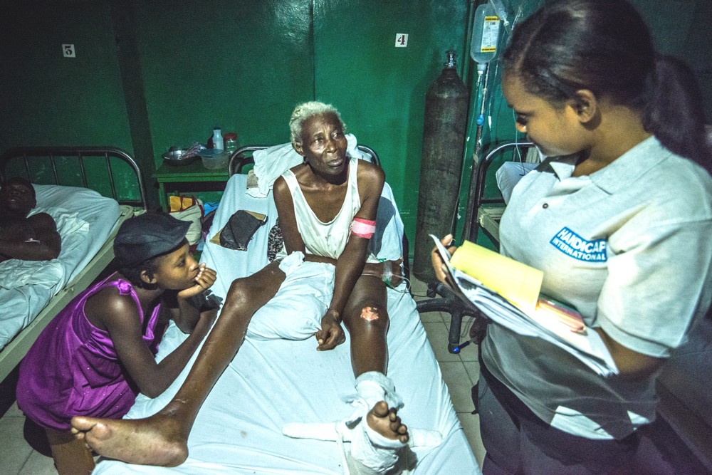 Deux équipes de trois experts dédiées à la prise en charge des personnes blessées ont été déployées dans la ville des Cayes. Composées d’un chef de projet spécialisé en besoins spécifiques (notamment en réadaptation), d’une chef de projet soutien psychologique, d’un kinésithérapeute et d’un travailleur social, chacune de ces équipes a évalué l’état des hôpitaux et des services de réadaptation afin d’apporter un soutien aux structures locales. Chaque équipe fournit également des aides à la mobilité (fauteuils roulants, béquilles, déambulateurs), donne des premiers soins de réadaptation aux blessés par l’ouragan Matthew et propose un soutien psychologique afin d’aider les victimes à surmonter leurs traumatismes.
